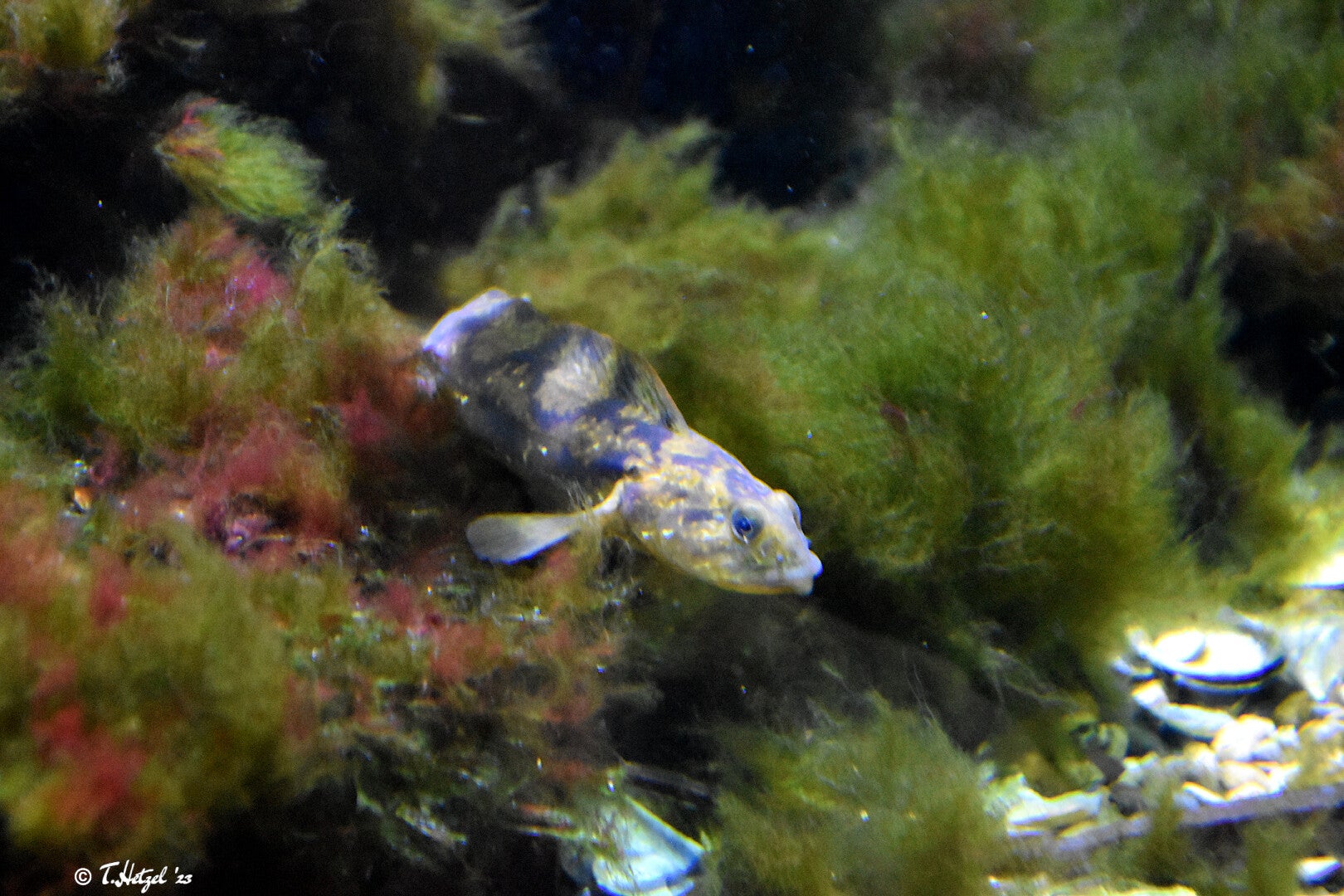 Die Europäische Aalmutter ist ein kleiner Fisch, der an nordostatlantischen Küsten zu finden ist. Sie wird maximal 52 cm groß, wobei man heute leider kaum noch Exemplare über 35 cm findet. Neben Küsten bewohnt die Art auch Flussmündungen, kommt also auch in Brackwasser vor. Die Tiere leben recht versteckt zwischen Felsen und Seetang von der Gezeitenzone bis in Tiefen von 40 Metern. Interessant ist auch, dass die Art mehrstündiges Trockenfallen überleben kann, indem sie mit den Kiemen Luft atmet. Die Nahrung der Aalmutter besteht vor allem aus Krebstieren, Würmern, Wasserasseln, Fischlaich, Jung- und Kleinfischen. Seltener werden auch Pflanzenteile gefressen. Sie selbst gilt für viele andere Tiere als wichtige Nahrungsquelle. So etwa für Dorsche, Seevögel, Robben, Otter oder Tümmler. Auch wird sie gerne beangelt und kommerziell befischt. Die Verschmutzung der Nord- und Ostsee führt zu zahlreichen Entwicklungsstörungen bei diesen Fischen. So gibt es zum Beispiel inzwischen deutlich mehr Männchen als Weibchen. Der Müll am Meeresgrund bietet den Tieren jedoch auch neue Versteckmöglichkeiten, was aber nur ein schwacher Trost sein dürfte. Die Art wird von der IUCN derzeit nicht gelistet, dürfte allerdings noch recht häufig und somit nicht gefährdet sein. In unseren Zoos ist sie gut vertreten. So gibt es 23 öffentliche Haltungen in Deutschland und weitere 26 im restlichen EAZA-Raum (Zootierliste Stand: 13.11.2023).