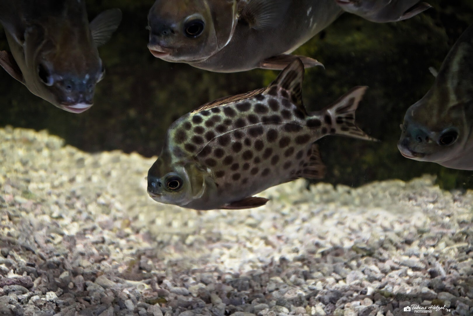Der Gemeine Argusfisch ist ein vielseitiger Fisch, der in den Küsten- und Brackwassergebieten des Indopazifiks vorkommt. Man findet ihn dort von Ostafrika bis Australien. Er bewohnt Mangroven, Flussmündungen und Korallenriffe. Mit einer durchschnittlichen Größe von 20–30 cm besitzt er ein auffälliges, rundes, gepunktetes Erscheinungsbild. Der Argusfisch ist ein Allesfresser und ernährt sich von Algen, kleinen Wirbellosen und organischem Material. Die Art ist anpassungsfähig und weit verbreitet und gilt derzeit als nicht gefährdet. Umweltverschmutzung und Lebensraumverlust könnten jedoch langfristig eine Bedrohung darstellen. In Deutschland findet man den Gemeinen Argusfisch in insgesamt 9 öffentlichen Einrichtungen. Weitere 81 öffentliche Haltungen sind es weltweit (Zootierliste Stand: 22.11.2024).
