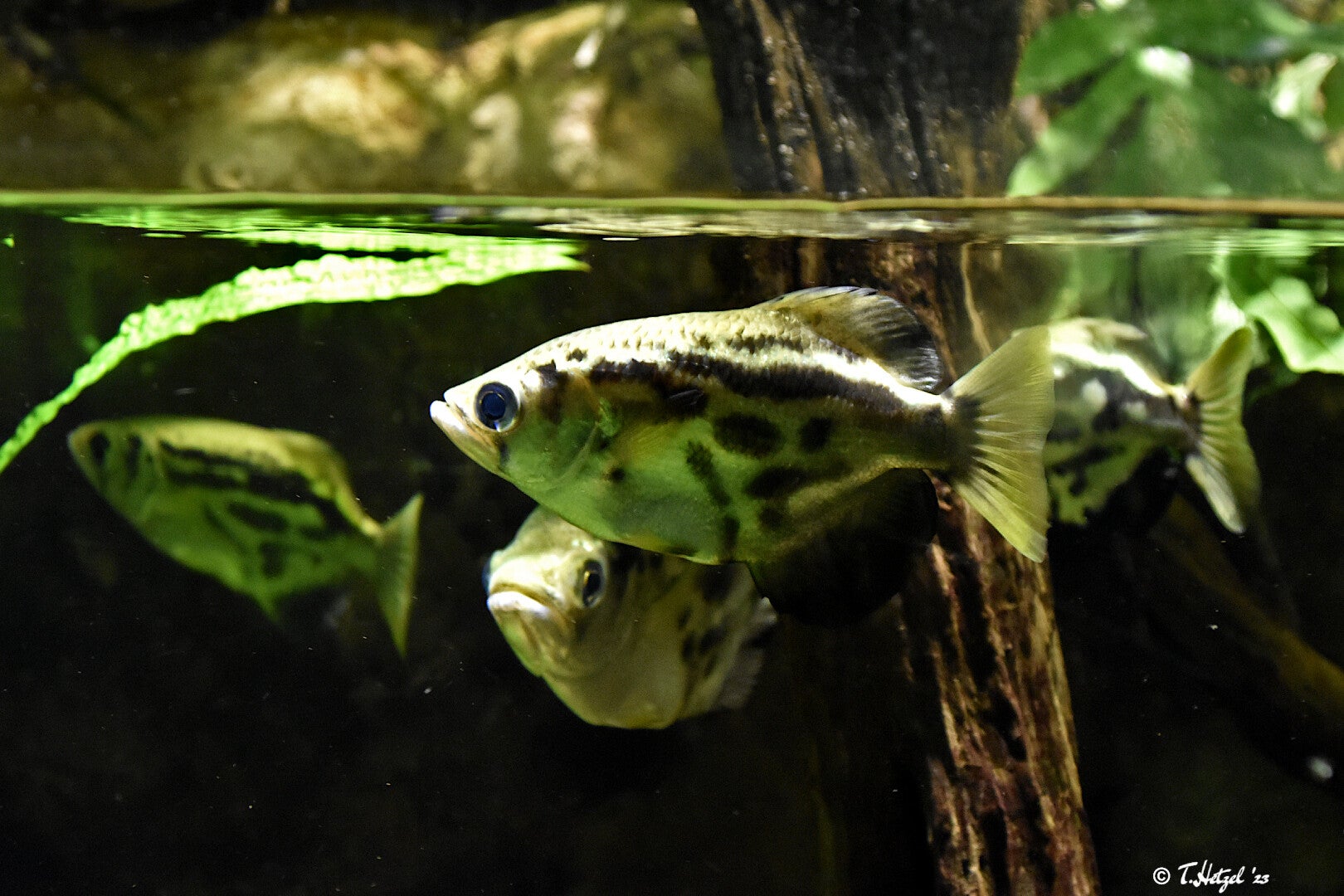 Der Leopard-Schützenfisch, auch Burma-Schützenfisch genannt, ist ein in Südostasien vorkommender Vertreter der Schützenfische. Er bewohnt tropische Brackwassergebiete wie Flussmündungen, Lagunen oder Mangrovenwälder, kommt jedoch auch in reinem Süßwasser vor. Häufig sind die Gewässer, in denen der Leopard-Schützenfisch vorkommt sehr flach. Die Tiere halten sich bevorzugt in kleinen Schwärmen unterhalb der Wasseroberfläche auf, wo sie auf Beute lauern. Diese besteht hauptsächlich aus Insekten, die sie mit einem gekonnt ausgespukten Wasserstrahl von den Ästen holen. Daneben werden auch kleine Krebstiere gefressen. Der Leopard-Schützenfisch kann eine Länge von bis zu 15 cm erreichen und ist recht häufig. Für eine Beurteilung der Gefährdung besitzt die IUCN derzeit jedoch noch nicht genügend Daten. In unseren Zoos findet man die Art relativ selten. 8 öffentliche Haltungen sind es in Deutschland und weitere 18 im restlichen EAZA-Raum (Zootierliste Stand: 01.06.2023).