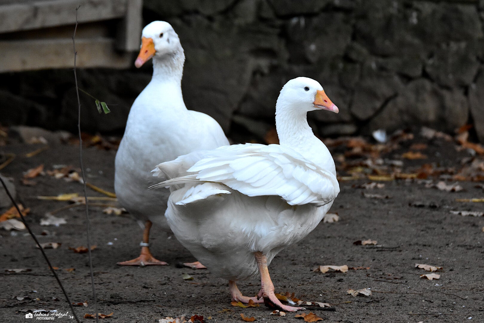 Die Leinegans ist eine alte Gänserasse, die sich regional herausgebildet hat. Sie wurde im Gebiet um den gesamten Flusslauf Leine herum gezüchtet und ihr Hauptverbreitungsgebiet erstreckte sich in Niedersachsen zwischen Göttingen und Hannover sowie im Emsland und um Oldenburg herum. Später weitete es sich bis nach Nordhessen und Nordthüringen aus. Bekannt ist die Rasse seit Mitte des 19. Jahrhunderts. Nachdem die Bestände in den 1950er Jahren nach und nach zugunsten von günstig aus dem Ausland importierten Schlachtgänsen zurückging, galt die Rasse spätestens mit Ende der 1960er Jahre bereits als ausgestorben. Erst 1994 entdeckte ein Agraringenieur in Hildesheim ein Paar der Leinegänse und später entdeckte er weitere in Niedersachsen und Thüringen. Mit sechs reinrassigen Tieren konnte die Nachzucht begonnen werden. Nach wie vor gilt die Leinegans jedoch als extrem gefährdet. Der Bestand belief sich noch 2006 gerade einmal auf gut 70 Tiere. In Deutschland kann man die Rasse mittlerweile in 12 öffentlichen Einrichtungen finden, weitere öffentliche Haltungen gibt es keine (Zootierliste Stand: 24.05.2024).