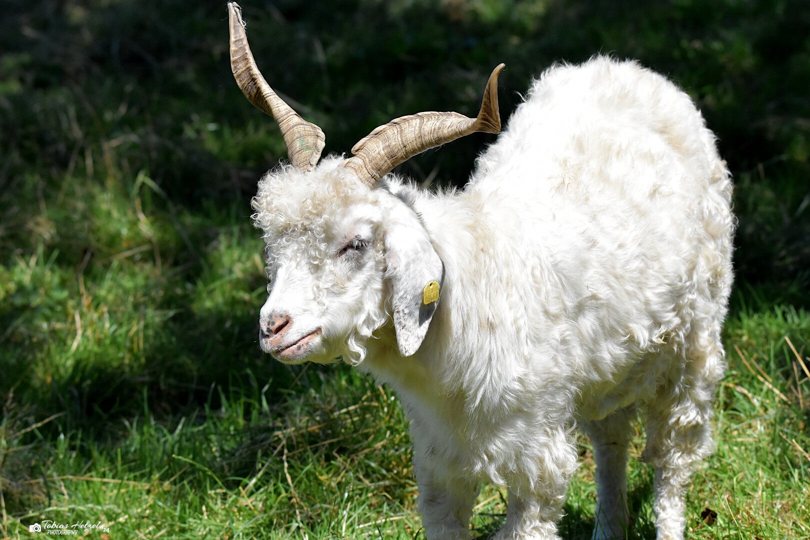 Die Angoraziege, früher auch Kamelziege genannt, zählt zu den Wollziegenrassen. Die reinweiße Ziege hat langes, seidiges und lockig herabhängendes Haar. Im Gegensatz zum Schafwollhaar sind die Wollhaare der Angoraziege nicht gekräuselt. Der mittlere jährliche Wollertrag beträgt etwa 2,5 kg bei zweimaliger Schur und wird als Mohair für die Herstellung von Teppichen, Decken und Stoffen verwendet. Die Weltproduktion von Mohairwolle liegt bei 15.000 Tonnen. Die Angoraziege war vor den Türken in Kleinasien nicht bekannt. Der genaue Ursprung der Angoraziegen ist unbekannt; so gibt es Thesen über einen vorbiblischen anatolischen Ursprung, jedoch ziehen die Wissenschaftler einen Import aus der zentralasiatischen Region in Betracht. Mit dem Einwandern von Nomaden aus Turkestan im 13. Jahrhundert oder durch Handel sei diese Rasse nach Anatolien gelangt und sei namensgebend im Raum Ankara, dem damaligen Angora, kultiviert worden. Nach einem kurzen Exportverbot des türkischen Sultans und dem Aufheben desselben im Jahre 1838 hätten die Erzeuger zur schnellen Nachfragebefriedigung lokale kurdische Ziegen eingekreuzt, was sich desaströs auf die Wollqualität ausgewirkt haben soll. Die nässeempfindlichen und daher für das mitteleuropäische Klima wenig geeigneten Ziegen wurden bereits 1838 nach Südafrika und wenige Jahre später nach Kalifornien exportiert. Bereits 1885 gab es in Kalifornien einen Bestand von 100.000 Angoraziegen. Nach Deutschland wurden 1768 erstmals fünf Angoraziegen und zwei Böcke gebracht. Sie waren ein Geschenk des Fürstlich-Liechtensteinschen Intendanten Johann Wengand an Karl Theodor, Pfalzgraf bei Rhein, und kamen nach Dossenheim an der Bergstraße. Heute findet man die Angoraziege in 6 öffentlichen Haltungen in Deutschland und weiteren 25 im restlichen europäischen Raum (Zootierliste Stand: 07.12.2020)