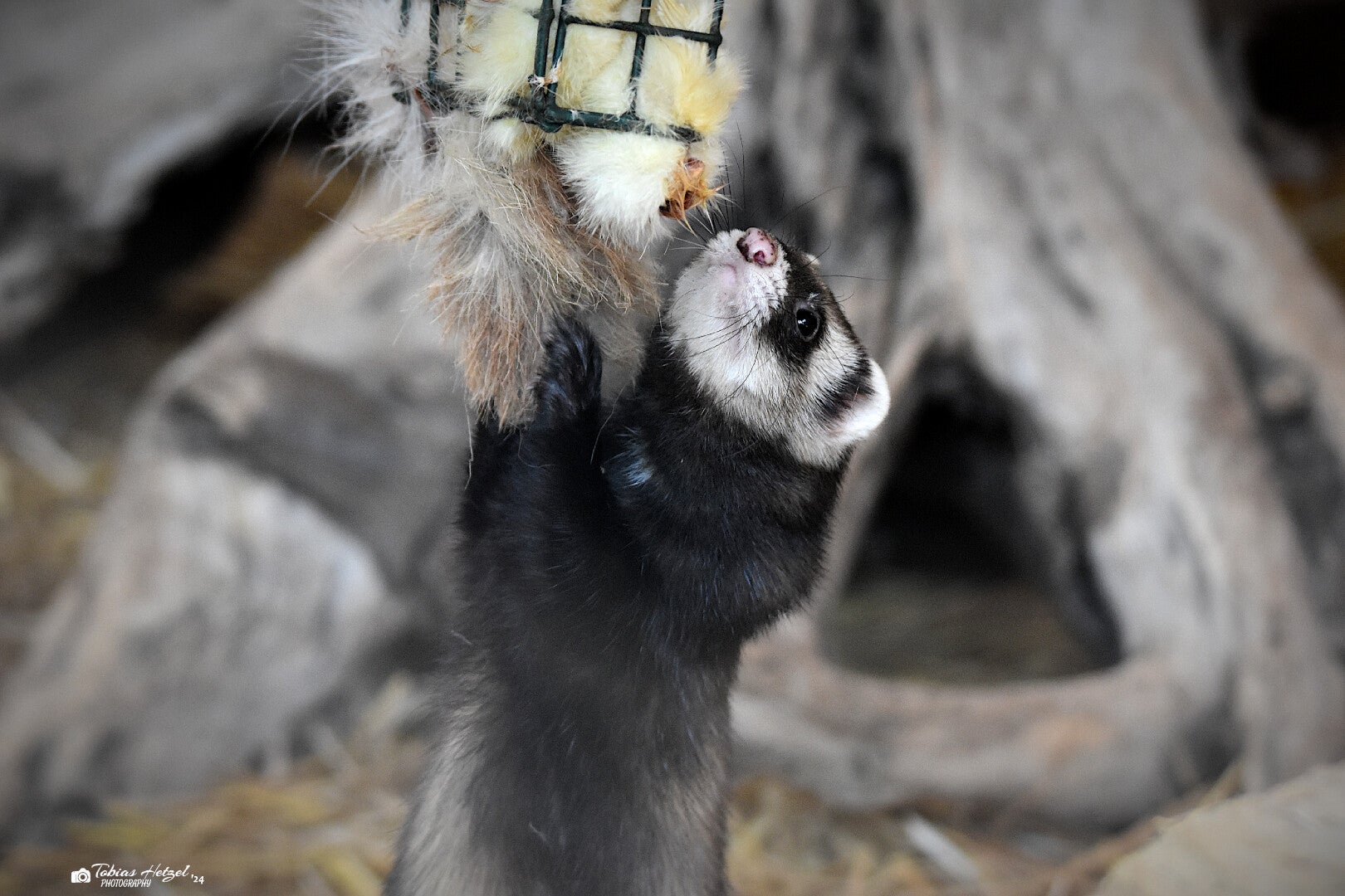 Das Frettchen, auch manchmal einfach nur als Frett bezeichnet, ist die domestizierte Form der Mustela-Untergattung der Iltisse. Mit hoher Wahrscheinlichkeit stammt es vom Europäischen Iltis ab. Bereits die Griechen kannten das Frettchen, ohne dass sie es jedoch selbst hielten. Aristophanes erwähnte die Tiere in den Acharnern. In der jüngeren Hälfte des 4. Vorchristlichen Jahrhunderts fand das Frettchen bei Aristoteles Erwähnung. Daher vermutet man die Anfänge der Domestikation des Frettchens im Mittelmeerraum aus spanischen oder ägyptischen Iltis-Populationen vor 2.500 Jahren. Früher wurden die Marder vor allem zu Jagdzwecken genutzt. Durch intensiven Kontakt mit Menschen können sie sehr zahm werden. Heutzutage werden sie nur noch selten zur Jagd eingesetzt und ehr als Haustier gehalten. Die bis zu 80 cm großen Tiere ernähren sich nahezu hauptsächlich von Fleisch. Bedingt durch ihren Verdauungsorganismus benötigen sie zudem einen gewissen Anteil an pflanzlichem Protein von rund 20 Prozent. Dieser wird in der Regel jedoch durch den Mageninhalt der Futtertiere oder in der Heimtierhaltung durch die im Trockenfutter enthaltenen pflanzlichen Inhaltsstoffe gedeckt. In manchen Gegenden sind Frettchen entlaufen und wieder verwildert, beispielsweise auf Sardinien, Sizilien oder in Neuseeland. In Neuseeland haben sie einen derartigen Schaden an der dort ansässigen Fauna angerichtet, dass die private Haltung von Frettchen mittlerweile sogar verboten wurde. Es ist jedoch nicht abschließend bewiesen, dass es sich wirklich um Frettchen und nicht um Hybride zwischen Frettchen und europäischen Iltissen handelt, da diese zeitgleich Neuseeland erreichten. Grundsätzlich wird davon ausgegangen, dass Frettchen keine eigenen Wildbestände aufbauen können, da ihnen der Jagdinstinkt teilweise abtrainiert wurde, sie aber alle zwei bis drei Stunden Beute machen müssten um zu überleben. Meist handelt es sich also um Vermischungen zwischen Frettchen und örtlich ansässigen Iltissen. Bei Privathaltern sind die quirligen Marder sehr beliebt und auch in unseren Zoos findet man sie häufig. So sind es alleine in Deutschland 114 öffentliche Haltungen und weitere 235 weltweit (Zootierliste Stand: 05.02.2024).