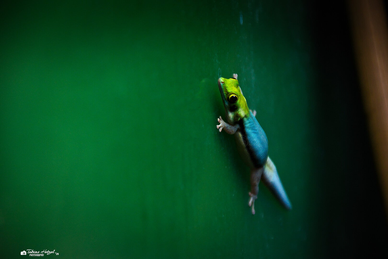 Der Blaue Bambustaggecko, auch Blaue Bambusphelsume genannt, ist eine kleine Geckoart, die in den Bambuswäldern im Nordwesten Madagaskars heimisch ist. Diese Geckos sind für ihre leuchtend blauen Körper und ihre charakteristischen gelben Köpfe bekannt. Sie leben hauptsächlich in Bambusstängeln, wo sie sich vor Fressfeinden verstecken und ihre Eier ablegen. In ihrer natürlichen Umgebung ernähren sich Phelsuma klemmeri von Insekten, kleinen Spinnen und süßem Nektar. Sie sind tagaktiv und nutzen ihre langen, klebrigen Zungen, um ihre Nahrung aufzunehmen. Der bis zu 4 cm große Blaue Bambustaggecko gilt als stark gefährdet, da sein Lebensraum durch Abholzung und landwirtschaftliche Nutzung stark beeinträchtigt wird. Der fortschreitende Verlust der Bambuswälder stellt die größte Bedrohung für das Überleben dieser Art dar. Schutzmaßnahmen und Nachzuchtprogramme in Zoos sind entscheidend, um das Überleben des Blauen Bambustaggeckos langfristig zu sichern. In Deutschland kann man die Art in insgesamt 9 öffentlichen Einrichtungen finden, weitere 42 öffentliche Haltungen sind es weltweit (Zootierliste Stand: 13.10.2025). Daneben gibt es zahlreiche Privathalter dieser Geckoart.