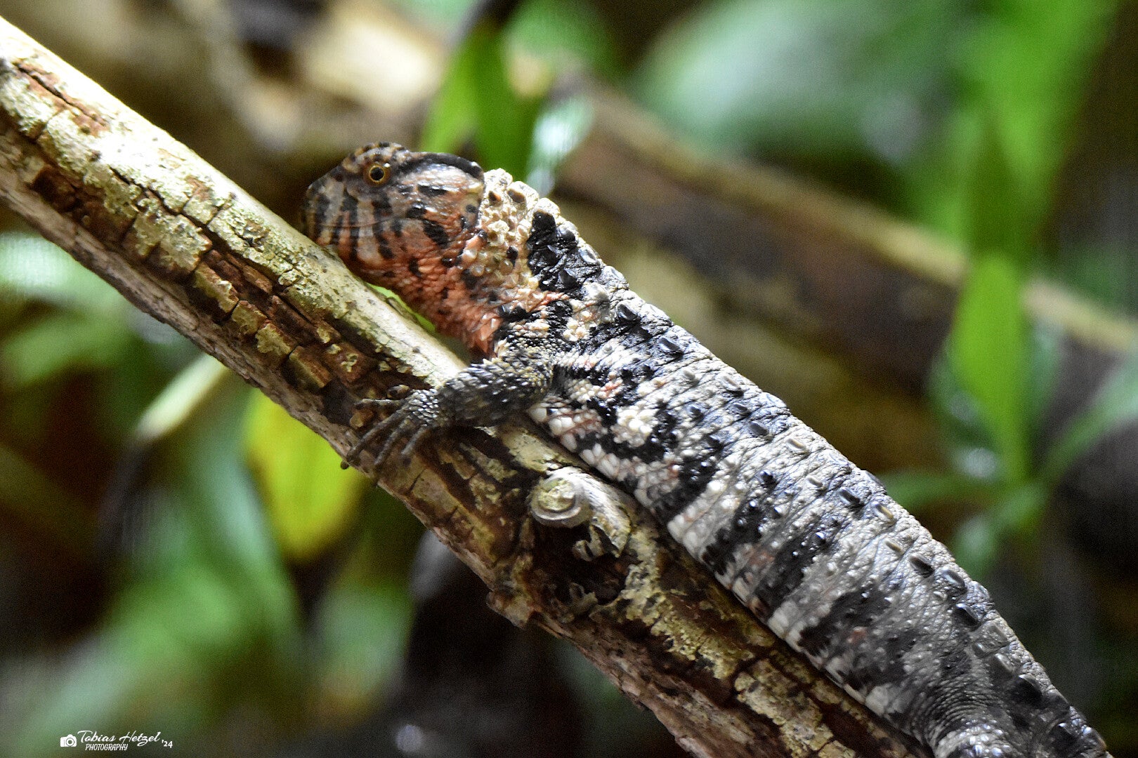 Die Krokodilschwanz-Höckerechse, auch Krokodilschwanzechse oder Krokodilhöckerechse genannt, ist eine Art, die früher der Familie der Höckerechsen zugeordnet wurde, heute jedoch eine monotypische Familie bildet, die Shinisauridae. Diese Echse kommt in der Natur nur in zwei sehr eng begrenzten Arealen vor, einer Population mit rund 600 Tieren im chinesischen Autonomen Gebiet Guangxi und einer zweiten in Vietnam, bei der man jedoch derzeit nicht genau weiß, um wie viele Tiere es sich dort handelt. Diese beiden Populationen bilden zeitgleich die beiden Unterarten der Krokodilschwanz-Höckerechse. Die bis zu 45 cm großen Reptilien bewohnen bevorzugt feuchtes bis halbfeuchtes Klima und kommen häufig an langsam fließenden Gewässern sowie an Teichen und Tümpeln mit dichter Uferbepflanzung vor. Zu ihrer Nahrung zählen überwiegend Wasserkrebse, kleinere Amphibien, Kaulquappen und Würmer. Daneben werden aber auch Insekten und die Brut von Nagetieren gefressen. Die Art ist durch die illegale Bejagung, die Zerstörung des Lebensraumes und den Bau menschlicher Siedlungen ernsthaft in ihrem Bestand bedroht. Von der IUCN wird sie daher als stark gefährdet eingestuft. Dem Schutz der Art dienen mehrere Schutzgebiete in ihrem Verbreitungsgebiet sowie nicht unwesentlich auch die Zucht in Zoos und bei Privathaltern. In unseren Zoos findet man Tiere ohne Unterartenstatus recht häufig. So gibt es derzeit 13 öffentliche Haltungen in Deutschland und weitere 58 weltweit (Zootierliste Stand: 13.03.2024).