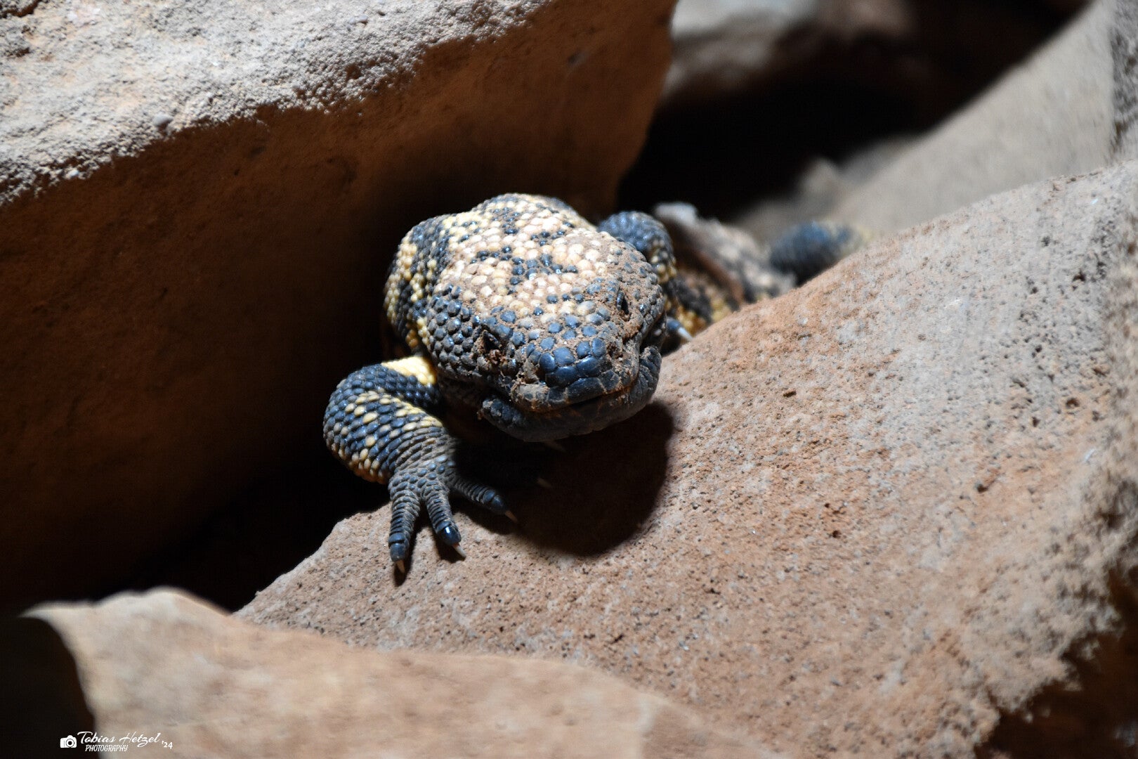 Die Gila-Krustenechse, auch Gilatier oder Gilamonster genannt, ist eine der fünf rezenten Vertreter der Kustenechsen. Sie lebt in den Trockengebieten des südwestlichen Nordamerikas, ist am frühen Morgen aktiv, bodenbewohnend und ernährt sich vor allem von Eiern, Kleinsäugern und kleinen Jungvögeln. Lange Zeit wurde sie neben der nahe verwandten Skorpion-Krustenechse als einzige giftige Echse angesehen. Heute weiß man, dass auch der Komodowaran und einige andere Echsen giftig sind. Die bis zu 50 cm langen Tiere wurden im Jahr 1952 als erste giftige Spezies Arizonas unter staatlichen Schutz gestellt. Später folgten auch weitere Bundesstaaten der USA sowie Mexiko. Der Lebensraum der Echsen ist durch Zersiedelung und Straßenbau zunehmend eingeschränkt. Um den Tieren ein Überleben zu ermöglichen hat man versucht diese in andere, geeignet erscheinende Gebiete umzusiedeln. Dieses Unterfangen wird jedoch nicht allgemein als optimal angesehen, da es potentielle Gefahren für die dortige Umwelt und auch für die umgesiedelten Tiere darstellt. Derzeit wird die Art von er IUCN als gering gefährdet eingestuft. In unseren Zoos ist sie gut vertreten. So sind es 13 öffentliche Haltungen in Deutschland und weitere 118 weltweit (Zootierliste Stand: 29.01.2024).