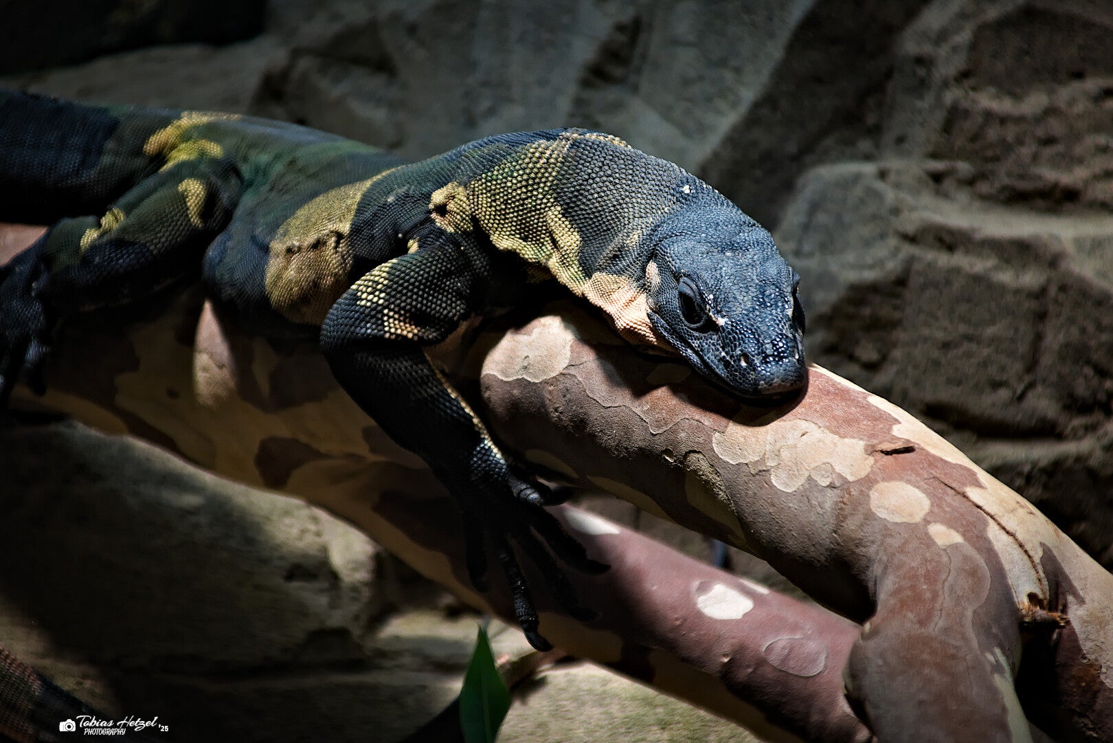 Der Buntwaran, auch Spitzschwanzwaran genannt, ist in Ostaustralien beheimatet und bewohnt eine Vielzahl von Lebensräumen, darunter Wälder, Buschland und Savannen. Er ist tagaktiv, kletterfreudig und ein geschickter Jäger. Mit bis zu 2 m Länge zählt er zu den größten Waranen Australiens. Sein auffällig geflecktes Muster dient der Tarnung. Der Buntwaran ist ein opportunistischer Fleischfresser, der sich von Insekten, Reptilien, Vögeln, Eiern und Aas ernährt. Er legt weite Strecken zurück und nutzt auch Termitenhügel als Brutstätten. Obwohl er in weiten Teilen seines Verbreitungsgebiets noch häufig ist, wird er lokal durch Lebensraumverlust, Straßenverkehr und Vergiftung bedroht. Derzeit gilt die Art jedoch nicht als gefährdet. Schutzmaßnahmen in besiedelten Gebieten und Aufklärung über seine ökologische Rolle sind wichtig für den langfristigen Erhalt dieser faszinierenden Echse. In Deutschland kann man die Art derzeit in 3 öffentlichen Einrichtungen finden. Weitere 57 öffentliche Haltungen sind es weltweit (Zootierliste Stand: 15.07.2025).