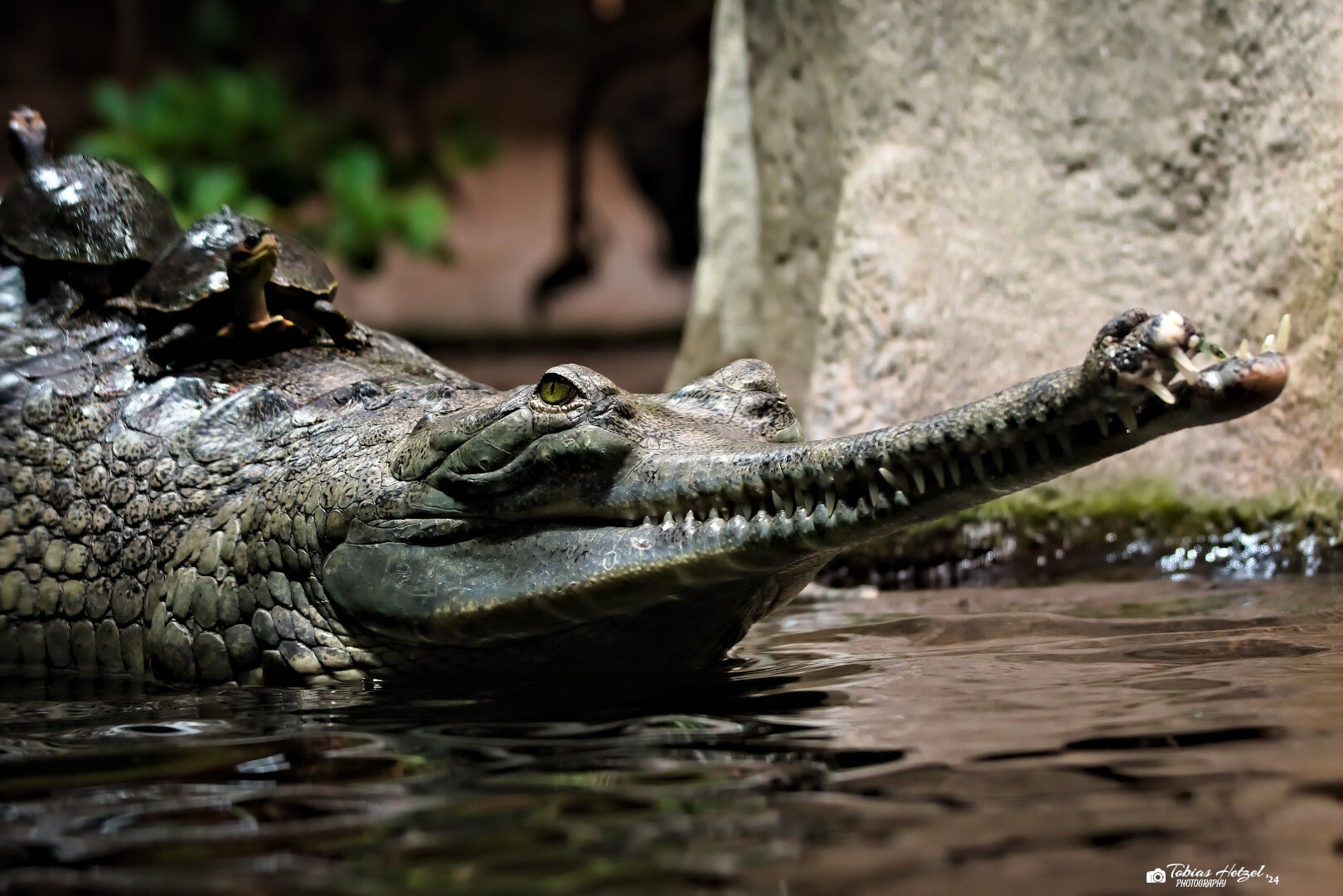 Der Gangesgavial (Gavialis gangeticus) ist ein seltener Krokodilartiger aus Südasien, der vor allem in den Flüssen des Ganges- und Indusbeckens vorkommt. Mit einer Länge von bis zu 6 Metern und seinem charakteristisch schmalen, langen Maul ist er ideal an das Fangen von Fischen angepasst, die seine Hauptnahrung darstellen. Gangesgaviale sind ausgezeichnete Schwimmer, verbringen aber auch Zeit sonnenbadend an Flussufern. Die Art ist stark gefährdet, da Flussverschmutzung, Lebensraumverlust und Fischerei ihre Bestände drastisch dezimiert haben. Schutzprogramme sollen ihr Überleben sichern. In Deutschland findet man den Gangesgavial derzeit nur im Zoo Berlin, weltweit gibt es weitere 34 öffentliche Haltungen (Zootierliste Stand: 28.11.2024).