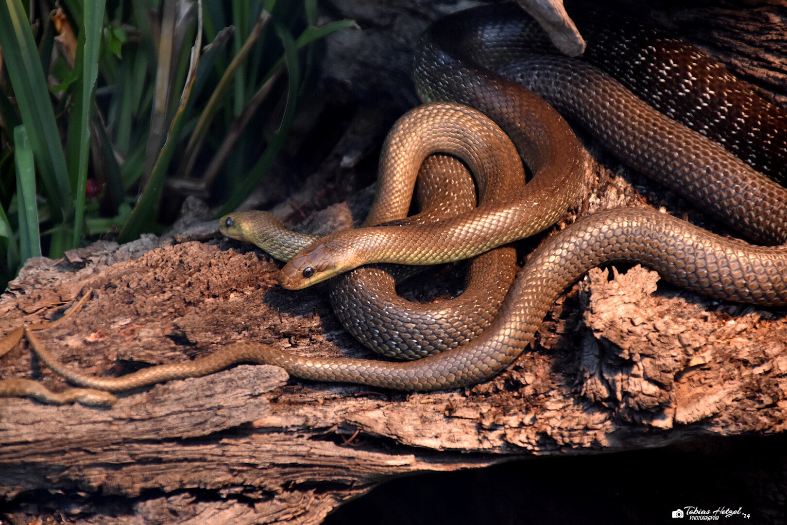 Die Äskulapnatter ist eine bis zu zwei Meter lange Schlange aus der Familie der Nattern. Sie zählt zu den größten Schlangenarten Europas und ist wie die meisten Vertreter dieser Familie ungiftig. Ihre Verbreitung ist mediterran auf Südeuropa und Kleinasien konzentriert. Daneben gibt es jedoch auch isolierte Vorkommen in Deutschland, Österreich und der Schweiz. Sie bevorzugt warme und besonnte Bereiche, die allerdings nicht zu trocken sein dürfen. Entsprechend findet man die Äskulapnatter vor allem an feuchtwarmen, sonnenexponierten Stellen im Flachland und an besonnten Hängen im Bergland. Ebenfalls findet man sie häufig an Gewässerufern und in Auwäldern sowie auf Waldlichtungen oder in Geröll und Gebüschen. Diese Schlange ist tagaktiv, verlagert jedoch besonders im Hochsommer ihre Hauptaktivitätsphasen in die Morgen- und Abenddämmerung. Im Winter verkriecht sie sich und hält, abhängig vom vorherrschenden Klima, eine fünf bis sechs Monate andauernde Winterruhe. Sie ist in der Lage sehr gut zu klettern, tut dies jedoch selten und wenn dann meist nur zur Nahrungssuche. Sie ernährt sich von Kleinsäugern, vor allem Mäusen, sowie von Eidechsen und Vögeln, deren Nestlingen und Eiern. Die Art besitzt ein recht großes Verbreitungsgebiet und ist nicht gefährdet. In unseren Zoos wird sie relativ häufig gezeigt. So gibt es 21 öffentliche Haltungen in Deutschland und weitere 38 weltweit (Zootierliste Stand: 07.06.2024).