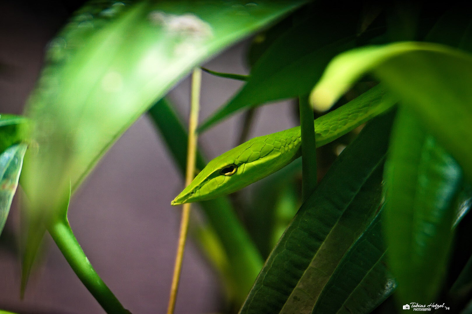 Der Grüne Baumschnüffler ist eine schlanke, giftige Schlange, die in den tropischen Wäldern Süd- und Südostasiens, besonders in Indien und Sri Lanka, heimisch ist. Sie lebt überwiegend in Bäumen und ist hervorragend getarnt durch ihre grüne Farbe. Mit einer Länge von bis zu 2 Metern ernährt sie sich nahezu ausschließlich von Echsen und Fröschen und frisst nur äußerst selten auch Vögel, Fische und kleine Nager. Der Grüne Baumschnüffler ist tagaktiv und nutzt sein gutes Sehvermögen zur Beutesuche. Obwohl die Art nicht akut gefährdet ist, stellen Abholzung und Lebensraumverlust eine Bedrohung dar. Wegen seiner besonderen Nahrungsansprüche wird der Grüne Baumschnüffler nur selten in unseren Zoos gehalten. So gibt es derzeit in Deutschland nur eine öffentliche Haltung und weitere 9 sind es weltweit (Zootierliste Stand: 26.11.2024).