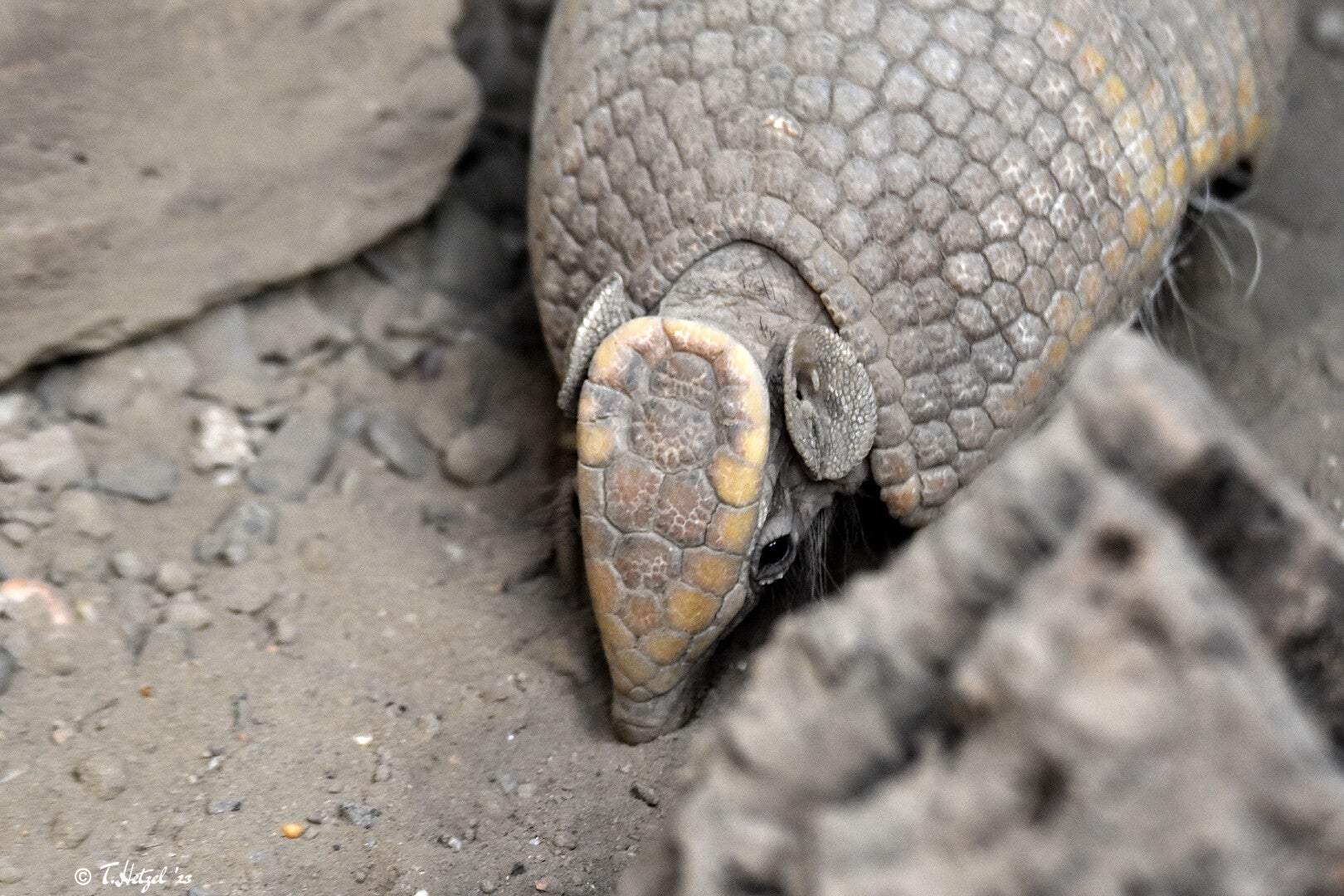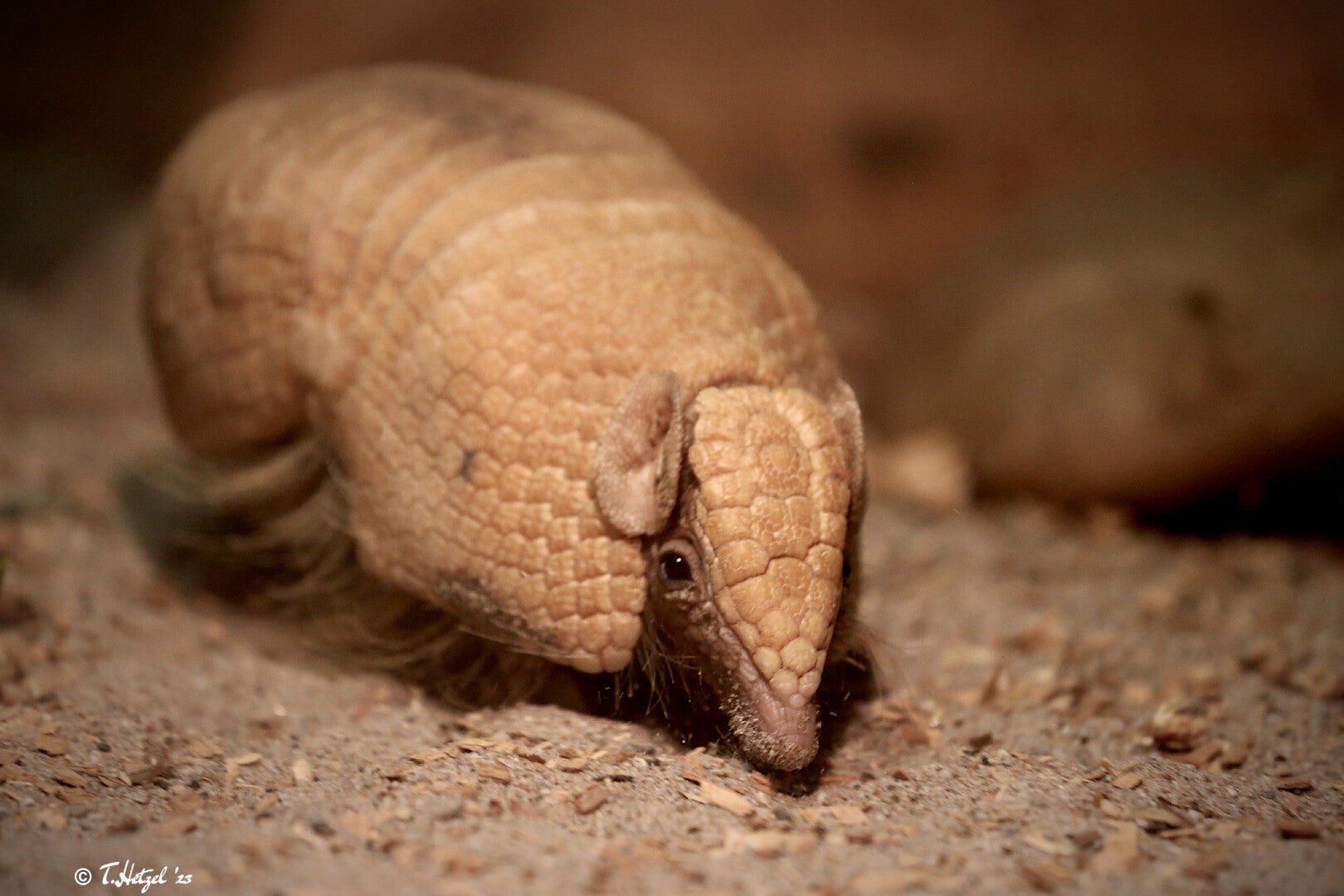 der Gruppe der Gürteltiere, welche im mittleren Südamerika zu Hause ist. Hier ist es weit verbreitet und kommt vom südöstlichen Bolivien über den südwestlichen Cerrado-Gürtel Brasiliens und Paraguays bis in den Norden Argentiniens vor. Bevorzugtes Habitat sind dabei trockene Wälder und Buschlandschaften, es kommt aber auch in landwirtschaftlich genutzten Gebieten vor. In feuchteren Gebieten bevorzugt das Südliche Kugelgürteltier Palmsavannen und Galeriewälder. Es erreicht eine Kopf-Rumpf-Länge von bis zu 27 cm und ein Gewicht von etwa 1 bis 2 kg. Die Art ist weitgehend dämmerungs- und nachtaktiv. Wie das Nördliche Kugelgürteltier gilt auch das Südliche als schlechter Gräber. Bei Beobachtungen von mehreren Individuen im zentralen Brasilien ergaben sich jedoch häufigere Grabungsaktivitäten als ursprünglich vermutet. Bei ungünstigen oder kalten Witterungsbedingungen konnten in einzelnen Unterschlüpfen bis zu sechs Tiere gleichzeitig beobachtet werden. Solche Gruppenbildungen sind aber nur temporär und dauern meist nur wenige Tage an. Das Südliche Kugelgürteltier ist ein Insektenfresser, der seine Nahrung opportunistisch vom Boden aufnimmt und nicht wie andere Gürteltierarten gezielt Löcher gräbt oder Ameisen- bzw. Termitenhügel aufbricht. Neben Ameisen und Termiten werden auch andere Wirbellose wie Spinnen und Käfer gefressen. Weiterhin nimmt es zusätzlich Früchte zu sich. Bei Gefahr flüchtet das Tier in der Regel und rennt in Zick-Zack-Linien davon oder verbirgt sich in Erdlöchern. Wird ein Tier bedroht kann es sich aber auch zu einer festen Kugel zusammenrollen, wobei die dreieckige Stirnplatte und der feste Schwanz die Öffnung des Panzers verschließen. Das Südliche Kugelgürteltier wird von der IUCN auf Grund seiner weiten Verbreitung als gering gefährdet eingestuft. Lokal wird es aber vom Menschen als Nahrungsressource gejagt und aufgrund der Tatsache, dass es leicht zu fangen ist, teilweise als Haustier gehalten. Vor allem der daraus resultierende Handel mit dieser Gürteltierart, bei dem ein Großteil der Tiere stirbt, wird als Gefahr gesehen. Zudem ist es durch illegale Brandrodungen gefährdet. Die größte Gefährdungsursuche stellt die Erschließung der Lebensräume im Zuge der Industrialisierung dar. In unseren Zoos wird die Art recht häufig gehalten. So gibt es insgesamt 26 öffentliche Haltungen in Deutschland und weitere 77 im restlichen EAZA-Raum (Zootierliste Stand: 11.12.2023).