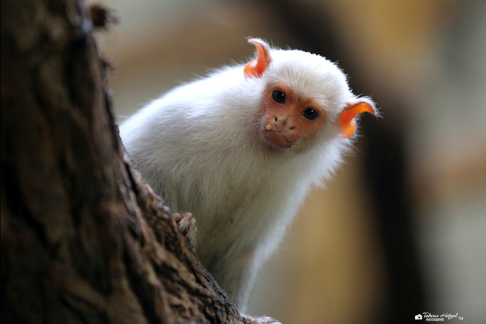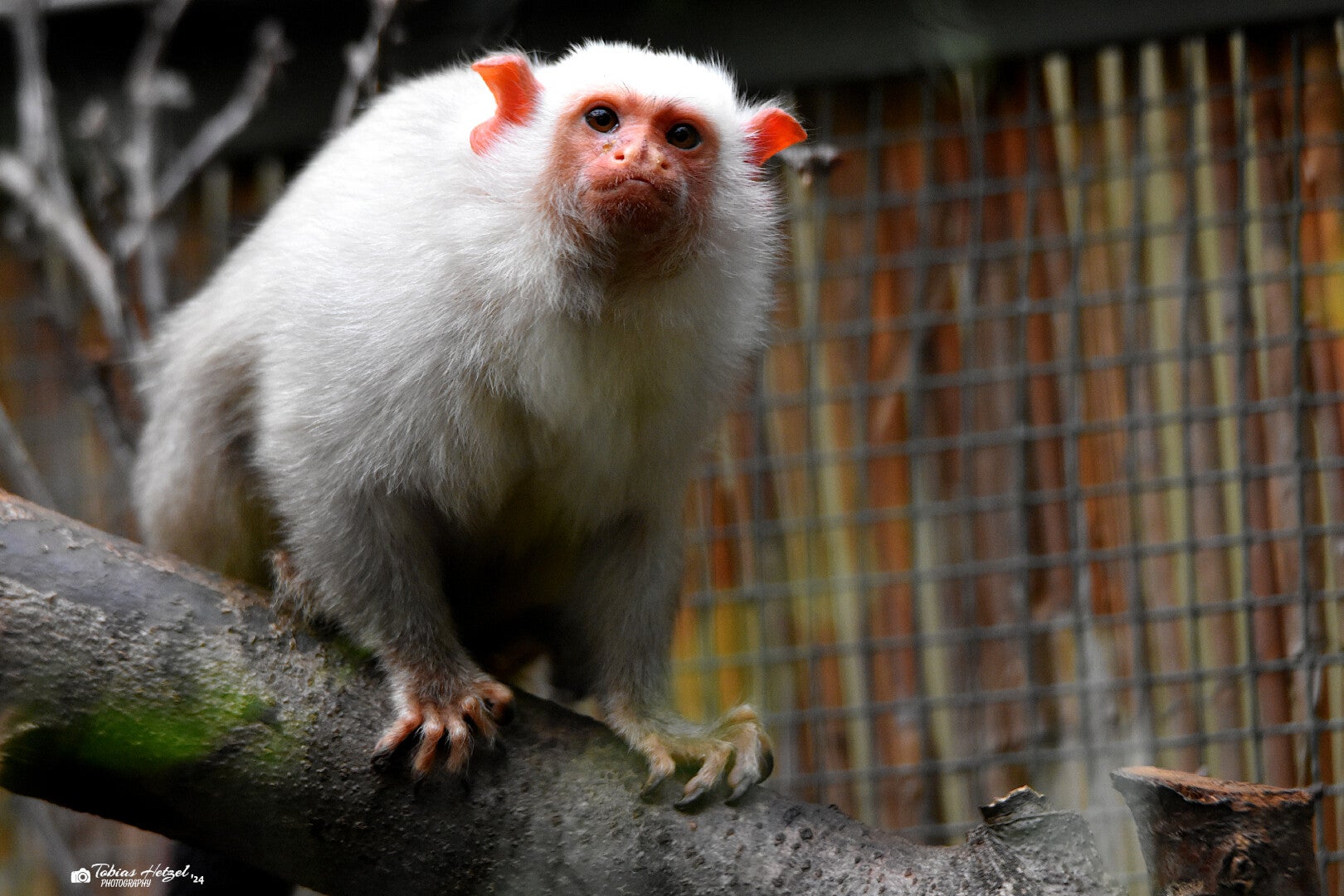 Das Silberäffchen auch Silbernes Seidenäffchen genannt, ist eine Primatenart aus der Familie der Krallenaffen. Die bis zu 28 cm großen Äffchen zeichnen sich durch ein weißliches bzw. silberfarbenes Fell aus und besitzen das östlichste Verbreitungsgebiet aller Seidenäffchen. Sie kommen dabei nur im östlichen Amazonasbecken vor, wo ihre Verbreitung im Norden vom Amazonas, im Westen vom Rio Tapajós und im Osten vom Rio Tocantins begrenzt wird. Bewohnt werden Wälder mit einer Vorliebe für dicht bewachsene Sekundärwälder. Das Silberäffchen ist ein tagaktiver Baumbewohner, der die Nacht in Baumhöhlen oder in dichter Vegetation verbringt. Es lebt in Familiengruppen mit 4 bis 15 Tieren und ernährt sich vorwiegend von Baumsäften. Wie alle Marmosetten sind die Tiere in der Lage mit Hilfe ihrer spezialisierten Zähne Löcher in die Baumrinde zu nagen, um so an die Nahrungsquelle zu gelangen. Daneben fressen sie auch Früchte, Blätter und Insekten. Hauptbedrohung der Art stellt wie so oft der Verlust des Lebensraumes durch Waldrodungen dar. Auf Grund ihrer Anpassungsfähigkeit sind sie hiervon jedoch weniger betroffen als andere südamerikanische Primaten. So sind die Bestände zwar im Rückgang begriffen, die IUCN listet die Art derzeit aber noch als nicht gefährdet. In Deutschland findet man die kleinen Äffchen in 8 öffentlichen Einrichtungen. Weitere 40 öffentliche Haltungen gibt es weltweit (Zootierliste Stand: 07.06.2024).