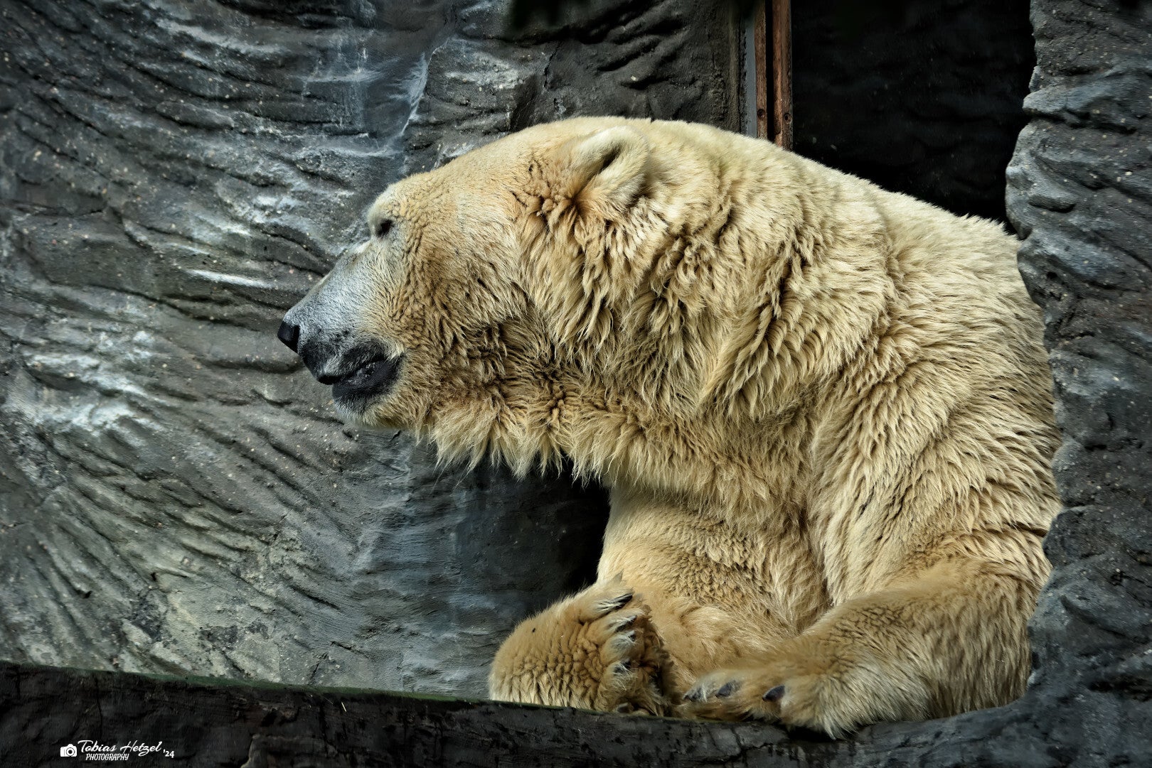 Der Eisbär bewohnt die nördlichen Polarregionen und ist eng mit dem Braunbären verwandt. Neben dem Kamtschatkabären und dem Kodiakbären ist er mit einer Größe von bis zu 2,80 m das größte landlebende Raubtier. Er wurde bereits vor der Berührung der Europäer von den indigenen Völkern vor allem des Felles und des Speckes wegen gejagt. In den 1950er und 1960er Jahren intensivierte sich diese Jagd nochmals durch die Nutzung motorisierter Fortbewegungsmittel. Mittlerweile gibt es strenge Regelungen zur Jagd auf die weißen Bären, ganz eingestellt wurde sie allerdings leider noch immer nicht. Des Weiteren wird ihr Lebensraum durch die Förderung von Erdöl und Erdgas in den arktischen Regionen zunehmend eingeschränkt. In der heutigen Zeit ist der Eisbär aber vor allem durch die globale Erwärmung gefährdet. Zu deren Sinnbild er mittlerweile geworden ist. Man vermutet, dass durch den Rückgang des Meereises bis zur Mitte des 21. Jh. Zwei Drittel der gesamten Eisbärenpopulation verloren geht. Die IUCN listet die Art als gefährdet. Weltweit gibt es noch etwa 26.000 freilebende Tiere. Eisbären bewohnen Eisflächen mit Meereszugang, arktische Inseln und Küstengebiete. Zu ihrer Nahrung zählen unter anderem Robben, gestrandete Wale, Aas und leider auch menschliche Abfälle. Zudem werden manchmal Kräuter, Beeren und Gräser gefressen. Die Haltung der großen Bären in den Zoos ist umstritten, daher haben viele Einrichtungen die Haltung der Eisbären eingestellt. Aktuell sind sie in den deutschen Zoos aber noch 10 Mal und weltweit noch ganze 90 Mal vertreten (Zootierliste Stand: 11.10.2024). In den Grenzgebieten in denen sich die Populationen von Eis- und Braunbär überschneiten kommt es immer häufiger zu Mischlingen aus diesen beiden Arten. Früher waren diese Hybride nur aus der Zoohaltung bekannt.