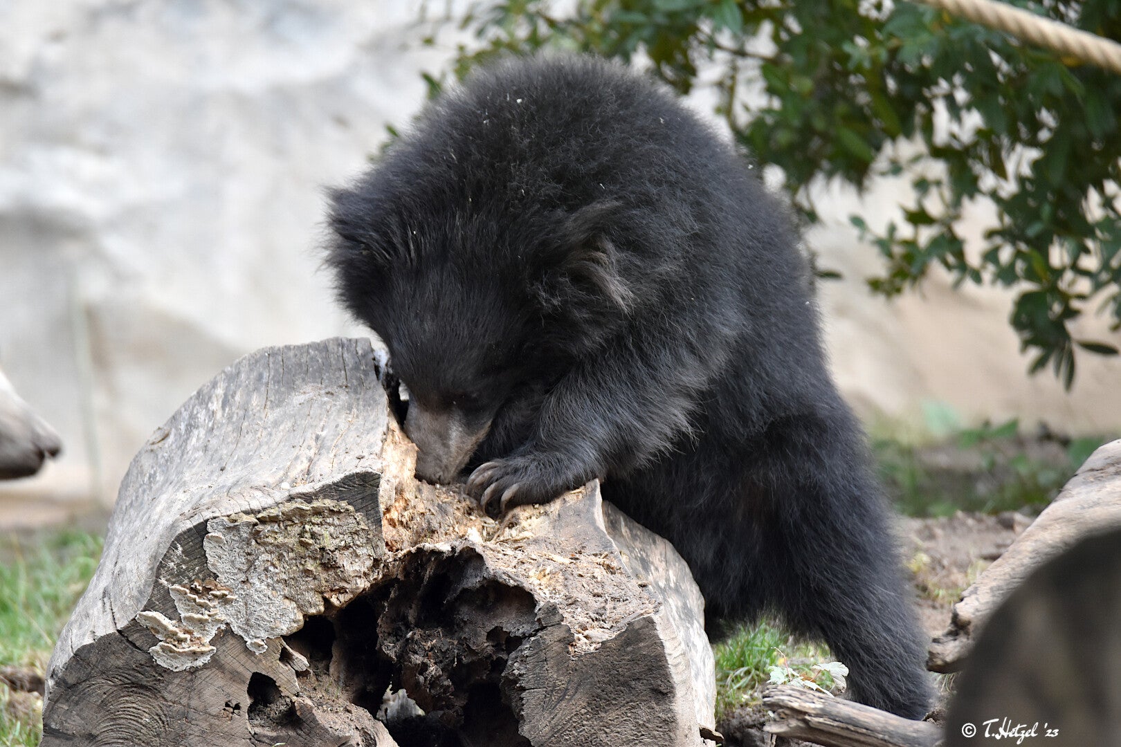 Der Indische Lippenbär ist eine Raubtierart aus der Familie der Bären. Er weist im Bau der Schnauze einige Anpassungen an eine vorwiegend aus Insekten bestehende Nahrung auf. So sind beispielsweiße die unbehaarten Lippen verlängert, sehr beweglich und können ausgefahren werden. Ebenfalls verlängert ist die schmale Zunge, die weit herausgestreckt werden kann. Die bis zu 1,80 m langen Tiere kommen in Indien und vereinzelt in Bangladesch, Bhutan und Nepal vor. Sie bewohnen eine Vielzahl von Lebensräumen zwischen tropischen Feuchtwäldern und Grasländern, finden sich aber am häufigsten in feuchten Grasländern und feuchten und trockenen Laubwäldern. Im Gebirge steigen sie selten bis in Höhenlagen von über 1500 m empor. In den Wäldern der Westghats in Indien findet man sie allerdings auch bis etwa 2000 m über dem Meeresspiegel. Die Tiere können zu jeder Tageszeit aktiv sein, meist jedoch in der Nacht. Tagsüber verbergen sie sich in Höhlen oder in dichter Vegetation. Im Gegensatz zu vielen anderen Bären halten sie keine Winterruhe, fallen aber während der Regenzeit in eine Phase verhältnismäßiger Inaktivität. Lippenbären leben wie alle Bären einzelgängerisch. Ihre Streifgebiete können sich jedoch zum Teil erheblich überlappen. Obwohl Lippenbären eher scheue Tiere sind, gelten sie manchmal als aggressiv. Das rührt daher, dass sie aufgrund ihres sehr schlechten Gesichts- und Gehörsinnes einen näher kommenden Menschen erst im letzten Moment bemerken und dann erschrocken reagieren. Zur Verteidigung bringen sie dann vor allem ihre langen Krallen zum Einsatz. Manchmal verwüsten sie auch Plantagen und werden deswegen verfolgt. Ein weiterer Grund für die Bejagung ist die Verwendung ihrer Körperteile als Nahrung oder zu medizinischen Zwecken. Der Gallenflüssigkeit werden ähnliche heilende Kräfte zugeschrieben wie der des Kragenbären. Die Tiere werden in einigen Regionen Indiens auch als Jungtiere lebend gefangen, um sie später als Tanzbären einsetzen zu können. Hauptbedrohung ist aber heute die Zerstörung ihres Lebensraums durch Waldrodungen; durch die Einebnung von Termitenhügeln werden sie zusätzlich ihrer Nahrung beraubt. Die IUCN listet die Art als gefährdet. Die Gesamtpopulation der Lippenbären wird auf rund 7.000 bis 10.000 Tiere geschätzt. Die höchsten Bestandsschätzungen gehen von 20.000 Tieren aus. In unseren Zoos sind Indische Lippenbären nur selten zu finden. So gibt es nur 3 Haltungen in Deutschland und weitere 4 im restlichen europäischen Raum (Zootierliste Stand: 11.05.2021).