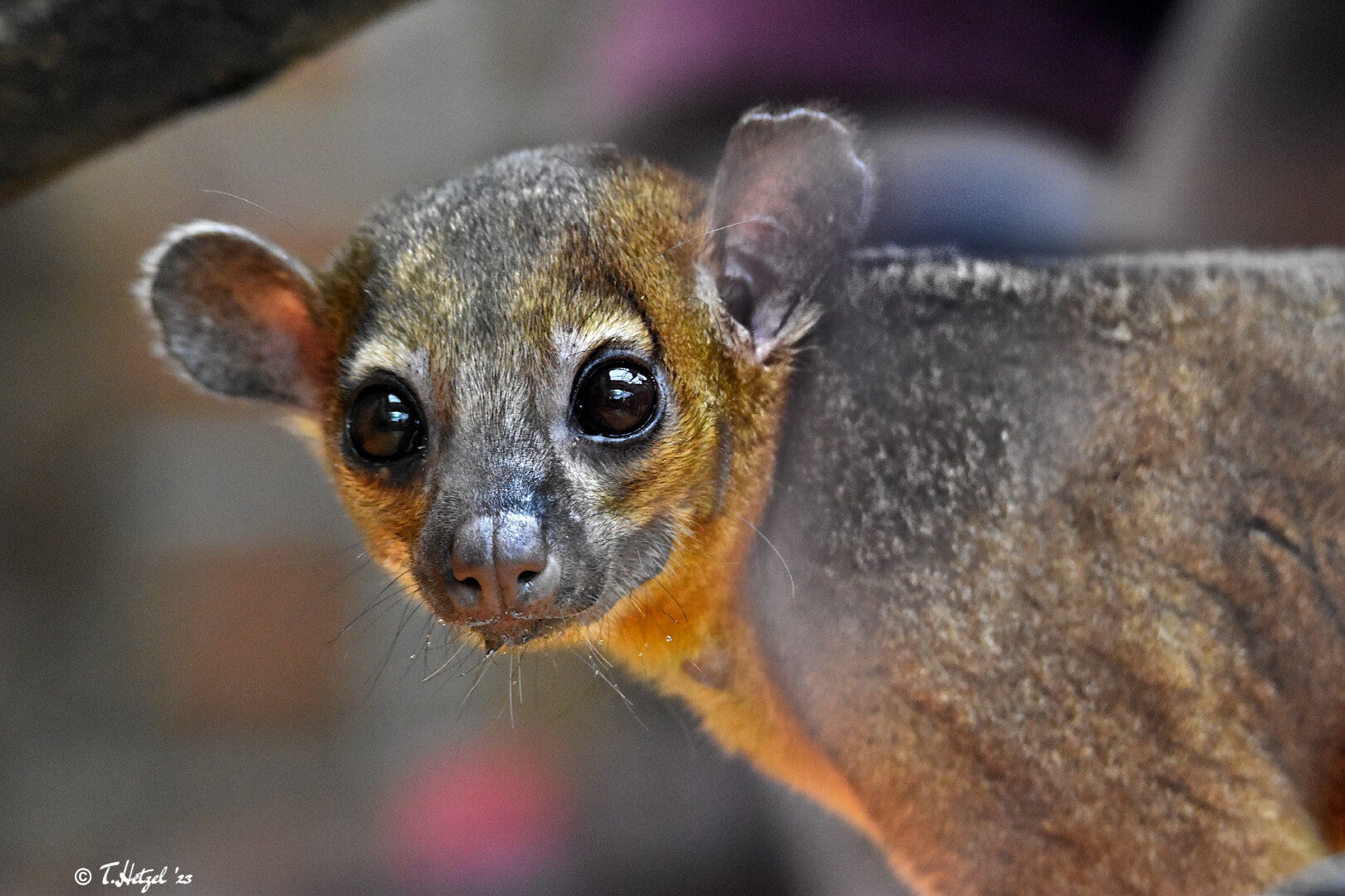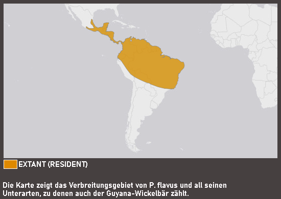 Der Guyana-Wickelbär ist eine Unterart des Wickelbären, auch Honigbär oder Kinkajou genannt. Es handelt sich hierbei um eine in Südamerika lebende Art der Kleinbären, die sich durch den langen, greiffähigen Schwanz von anderen Kleinbären unterscheidet. Der Guyana-Wickelbär kommt vor allem in Guyana, Französisch-Guayana und Surinam vor und bewohnt dort die Wipfelregionen der Bäume tropischer Regenwälder. Die bis zu 76 cm großen Tiere sind vorwiegend nachtaktiv und kommen freiwillig nur äußerst selten auf den Boden herab. Wickelbären leben in kleinen Familiengruppen, gehen jedoch einzeln auf Nahrungssuche. Die Tiere ernähren sich fast vollständig pflanzlich wobei Früchte bis zu 90 % ihrer Nahrung ausmachen. Daneben werden Blätter und Nektar, seltener auch Insekten oder Vogeleier gefressen. Trotz anhaltender Jagd auf die Tiere und dem Fang für den Heimtierhandel gilt die Art derzeit als nicht gefährdet. Während Tiere ohne Unterartenstatus recht häufig in unseren Zoos gehalten werden, kann man den Guyana-Wickelbär derzeit nur in 3 öffentlichen Einrichtungen im EAZA-Raum sehen. Einziger deutscher Halter ist derzeit der Zoo Dortmund (Zootierliste Stand: 16.08.2023).