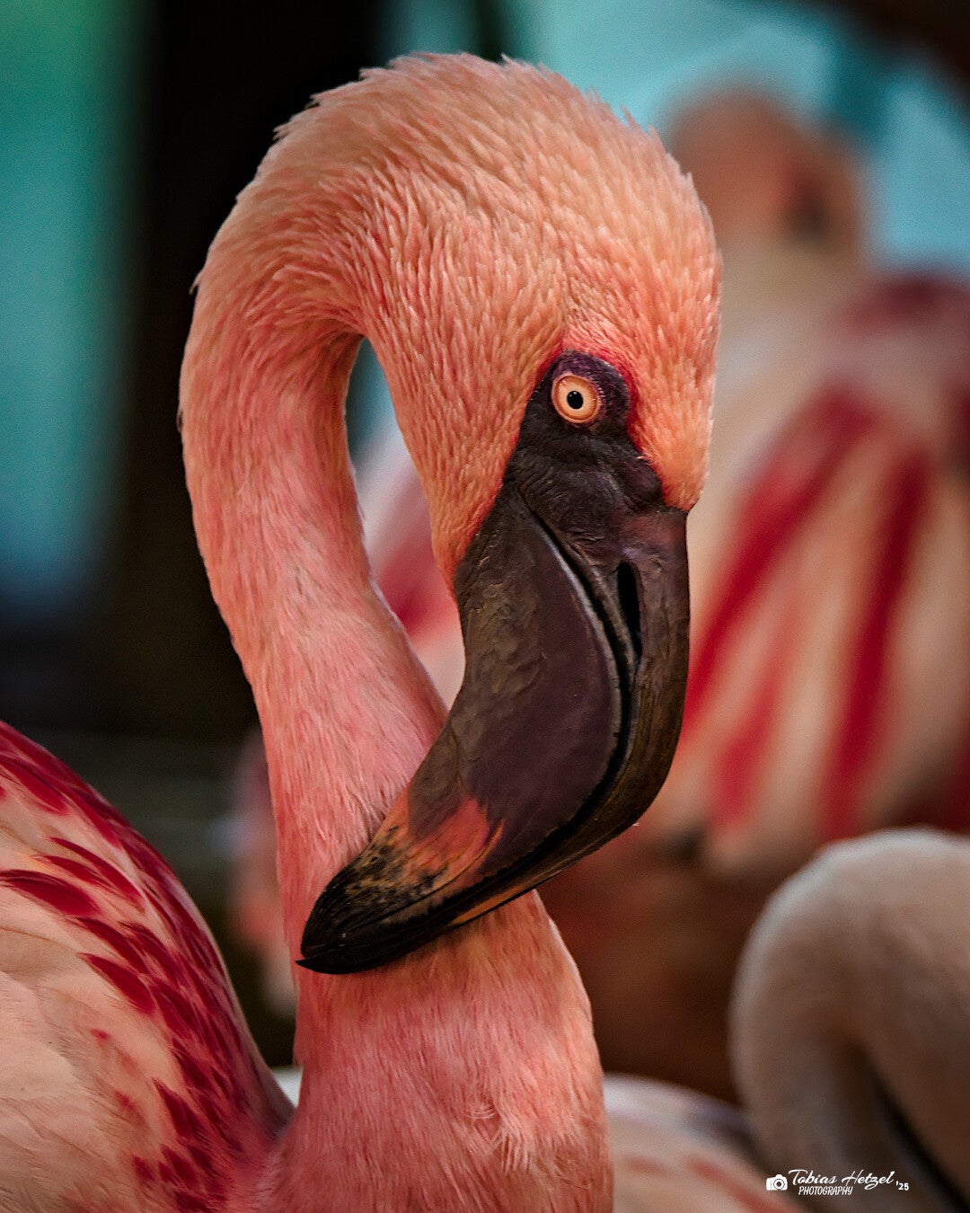 Der Zwergflamingo ist der kleinste Vertreter aus der Ordnung der Flamingos. Er wird maximal einen Meter groß und erreicht eine Flügelspannweite von 95 bis 100 cm. Zwergflamingo-Populationen brüten überwiegend an den Rift-Valley-Seen Ostafrikas in Äthiopien, Kenia und Tansania. Einige kleinere Brutansammlungen befinden sich im westlichen und südlichen Afrika sowie in Asien in Indien und Pakistan. Nicht brütend treten sie nahezu in jedem Land Subsahara-Afrikas und von der Arabischen Halbinsel bis Pakistan auf. Die größte Population mit geschätzten 1,5 bis 2,6 Millionen Vögeln findet sich an den Natronseen des Ostafrikanischen Grabens. Zwergflamingos leben vorrangig an seichten Salz- und Sodaseen, wo kaum andere Tiere leben. Sie ziehen je nach Bedingungen und Jahreszeit zwischen verschiedenen Salzseen umher. Dabei haben sie zahlreiche Anpassungen an diesen extremen Lebensraum entwickelt, den außer ihnen und anderen Flamingos kaum ein anderes großes Lebewesen gut zu nutzen weiß. Eine der wichtigsten Anpassungen daran sind die nackten Beine: Sie widerstehen dem ätzenden Wasser und sind lang genug, um die Flamingos weit über der Salzlauge zu halten. Tatsächlich vertragen Zwergflamingos große Mengen gelöster Chemikalien in ihrem Gewässer und überdies noch Wassertemperaturen von bis zu 70 °C, was aufgrund der tektonisch aktiven Lage vieler Flamingogewässer eine zwingende Anpassung ist. Gefressen werden von den Zwergflamingos Cyanobakterien, Kieselalgen und in geringerem Ausmaß kleine, aquatische Wirbellosen wie Rädertierchen. Dabei filtern sie ähnlich wie die Wale ihre Nahrung aus dem Wasser. In unseren Zoos ist die Art gut vertreten. Alleine in Deutschland sind es insgesamt 18 öffentliche Haltungen. Weitere 90 sind es weltweit (Zootierliste Stand: 14.06.2025).