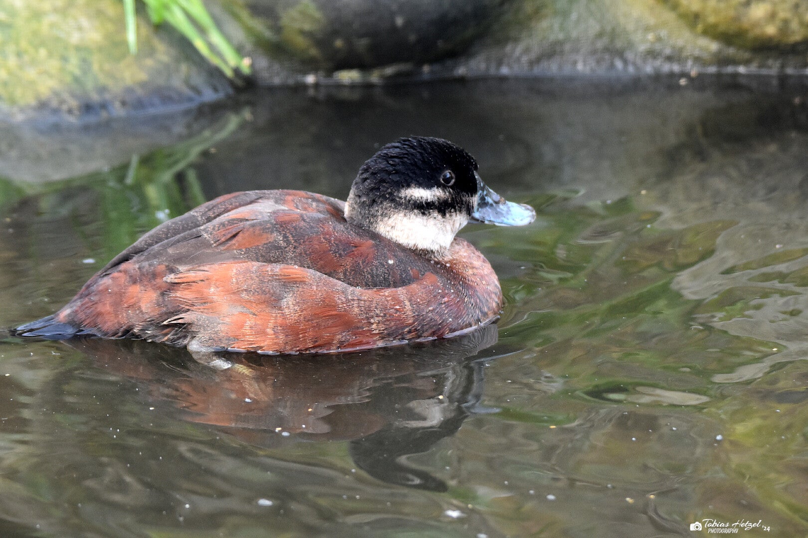 Die Afrikaruderente, auch Afrikanische Ruderente oder Maccoa-Ruderente genannt, ist eine Art aus der Unterfamilie der Ruderenten, die in drei disjunkten Verbreitungsgebieten in Afrika zu finden ist. Dies sind zum einen die Südspitze des Afrikanischen Kontinents und zum anderen der Norden Kenias und Ugandas sowie entlang des Flusslaufes des Blauen Nils. Der Verbreitungsschwerpunkt liegt dabei mit etwa 5.000 Tieren in Südafrika. Im Vergleich zu den anderen Ruderentenarten ist die Afrikaruderente recht groß. Sie kann eine Länge von bis zu 51 cm erreichen und besitzt einen kräftigen, fast klobig wirkenden, Schnabel. Im Prachtkleid weist der Erpel hellblaue Augenringe auf, der gesamte Kopf ist dann schwarz. Im Ruhekleid gleichen sich beide Geschlechter und das untere Kopfdrittel ist fast weiß. Die Tiere halten sich meist in Savannen auf, sind aber auch in Agrarzonen zu finden. Sie benötigen schilfumstandene Süßwasserseen und profitieren von angelegten Staugewässern. Die Nahrung dieser Ruderenten besteht aus feinen Samen und Grünteilen verschiedener Pflanzen. Kleinlebewesen werden nur zu einem sehr geringen Teil gefressen und spielen bei der Ernährung somit eine untergeordnete Rolle. 1999 wurde die Art noch als nicht gefährdet angesehen, da sie wie bereits erwähnt von den zunehmenden Staugewässern profitieren konnte. Birdlife International hat diese Einschätzung allerdings revidiert und gibt den Gesamtbestand mit nur noch rund 9.000 bis 11.700 Tieren an. Der anhaltende Bestandsrückgang hat dazu geführt, dass die IUCN die Art mittlerweile als stark gefährdet einstuft. Die Ursachen für den starken Bestandsrückgang sind bislang noch nicht hinreichend untersucht. Vermutet wird Gewässerverschmutzung, Verlust des Lebensraumes und eine Beeinträchtigung durch die Fischerei. In europäischen Zoos werden Afrikaruderenten nur sehr selten gehalten. Die europäische Erstzucht gelang 1974 dem englischen Wildfowl Trust. In Deutschland war es der Tierpark Berlin, der diese Enten 1979 erstmals zur Zucht brachte. Heute befindet sich die einzige öffentliche Haltung in Deutschland im Kölner Zoo. Daneben gibt es weitere 11 öffentlichen Haltungen weltweit (Zootierliste Stand: 27.03.2024).