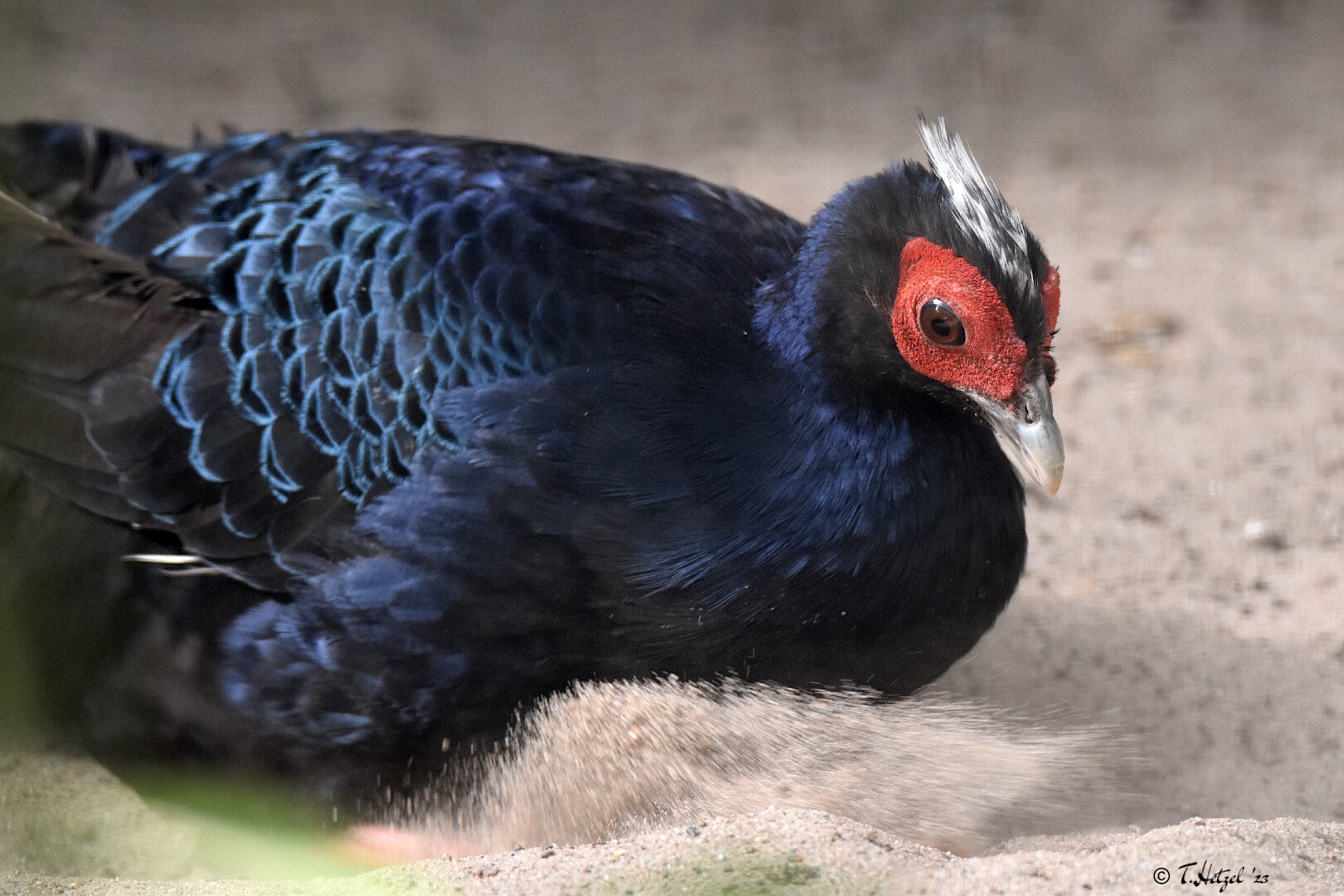 Der Vietnamfasan ist eine nicht ganz unumstrittene Art aus der Familie der Fasanartigen. Erst 1964 entdeckt, wird sie von manchen Autoren lediglich als Unterart des Edwardsfasan angesehen. Sehr wahrscheinlich handelt es sich neueren Untersuchungen zufolge jedoch um einen Hybriden aus Edwards- und Silberfasan. Der Vietnamfasan lebt endemisch im nördlichen Zentralvietnam. Er erreicht eine Körperlänge zwischen 58 und 65 cm und bewohnt Primär- und Sekundärwälder in der Ebene und im Hügelland. Dabei bevorzugt er scheinbar Wälder mit dichtem Blätterdach. Die Nahrung besteht sowohl aus Früchten, Beeren, Sämereien und Blüten, als auch aus Insekten und Spinnentieren. Der Gesamtbestand dieser „Art“ wird auf rund 50 bis 250 erwachsene Tiere geschätzt. Allerdings ist ihr Fortbestand aufgrund voranschreitender Waldnutzung und großräumiger Rodungen ungewiss. Die IUCN listet den Vietnamfasan daher als vom Aussterben bedroht. In unseren Zoos ist die „Art“ glücklicherweise mittlerweile recht gut vertreten und auch die Nachzucht ist bereits des Öfteren gelungen. Gegenwärtig gibt es 25 öffentliche Haltungen in Deutschland und weitere 80 im restlichen EAZA-Raum (Zootierliste Stand: 26.09.2023).
