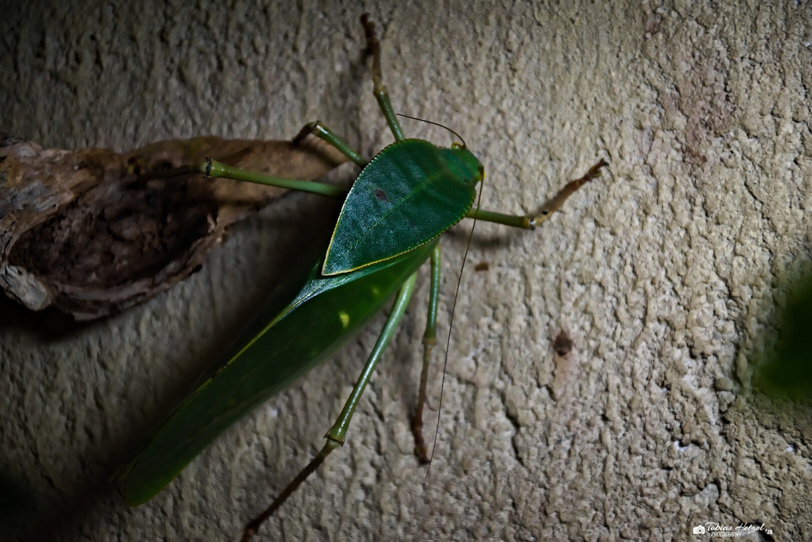 Die Riesenblattschecke ist eine der größten Laubheuschrecken der Welt und stammt aus den tropischen Regenwäldern Neuguineas und Nordaustraliens. Sie lebt in den Baumkronen feuchter Wälder, wo sie dank ihrer grünen, blattähnlichen Körperform perfekt getarnt ist. Erwachsene Tiere erreichen eine Körperlänge von bis zu 10 cm, mit Flügelspannweiten von über 15 cm. Die Art ist tagaktiv, friedlich und ernährt sich vor allem von Blättern und anderen Pflanzenteilen. Bei Gefahr kann sie mit den Flügeln rascheln oder auffällig zischen. Laut IUCN ist die Riesenblattschecke nicht gefährdet, da sie weit verbreitet und anpassungsfähig ist. Sie spielt eine wichtige Rolle im Ökosystem als Pflanzenfresser und Beute für zahlreiche Vogel- und Reptilienarten.