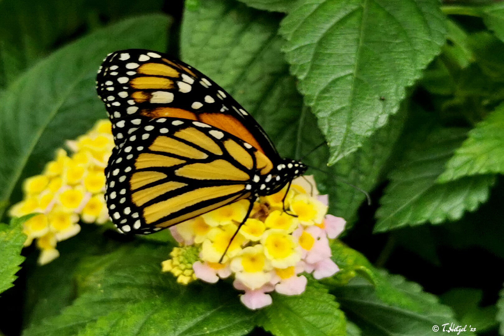 Der Monarchfalter, auch Amerikanischer Monarch genannt, ist ein auffällig orange und schwarz gezeichneter Schmetterling aus der Familie der Edelfalter. Er kommt ursprünglich aus Amerika, wo er weit verbreitet ist, hat sich im 18. Jahrhundert aber bereits über den Südpazifik bis nach Australien ausgebreitet. Er ist der wahrscheinlich am besten erforschte Schmetterling Nordamerikas und ein berühmter Wanderfalter. Einzelne Tiere legen bei ihrer Wanderung im Herbst in Nordamerika Strecken von bis zu 3600 km zurück. Die östliche Population überwintert mit mehreren 100 Millionen Tieren auf wenigen Hektar in der mexikanischen Sierra Nevada. Typischer Lebensraum des Monarchfalters sind offene Ödland- und Ruderalflächen, auf denen die Nahrungspflanzen der Raupen im Überfluss gedeihen. Die größte Populationsdichte besitzt die Art im Bereich der Großen Seen in Nordamerika, wo sehr viele Seidenpflanzen wachsen. Die Raupen der Art fressen bevorzugt Seidenpflanzen, aber auch eine Reihe anderer Pflanzenarten. Falter ernähren sich vom Nektar verschiedener Blütenpflanzen. Einmal geschlechtsreif leben die Falter lediglich noch rund einen Monat. So kommt es, dass es mehrere Generationen benötigt, bis die Tiere in ihrem Winterquartier ankommen. Da die Raupen primär von Seidenpflanzengewächsen abhängig sind, welche in den USA und Kanada teilweise als Unkraut bekämpft werden, gibt es einen negativen Bestandstrend. Weitere Bedrohungen sind der Wegfall von Überwinterungsplätzen durch Landverbrauch, eine Umstellung der Landwirtschaft, die die Bedingungen für Seidenpflanzen verschlechtern und die Einschleppung von Parasiten. Ein weiteres Problem ist der Verkehr. Bei schlechter Wetterlage fliegen die Tiere sehr niedrig und vor allem an mexikanischen Autobahnen, die über die Wanderroute der Falter führt sterben jährlich sehr viele Tiere. Alleine in 2018 sind so rund 200.000 Falter dem Verkehr zum Opfer gefallen. Im Jahr 2022 wurde die wandernde Unterart D. p. plexippus von der IUCN als stark gefährdet eingestuft, die Art an sich gilt jedoch derzeit noch als nicht gefährdet.